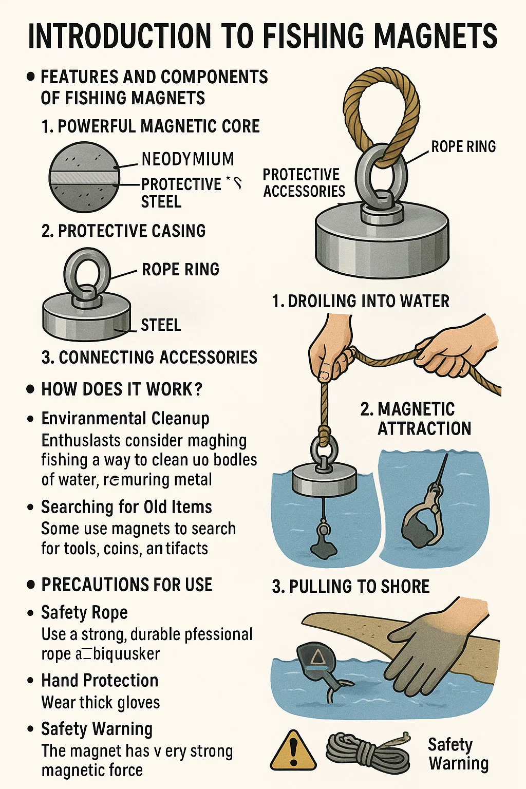 Magnet pancing, seperti namanya, adalah alat magnet kuat yang digunakan untuk "memancing" benda besi di dasar perairan atau di tempat yang sulit dijangkau. Ia menggunakan gaya magnet yang kuat untuk menarik dan mengambil benda logam, menggantikan kait dan tali tradisional.